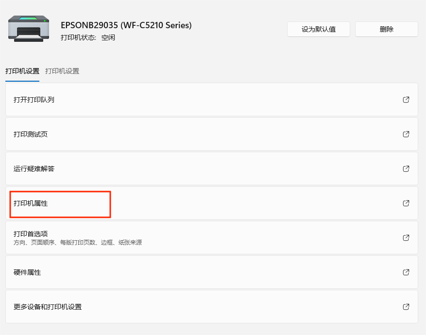 一、在设置中点击需要创建副本的打印机,点击打印机属性查看端口