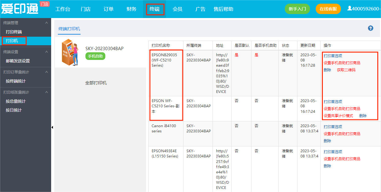 四、后台对打印机副本进行操作设置