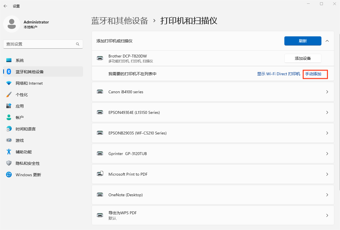 二、在添加打印机中选择手动添加