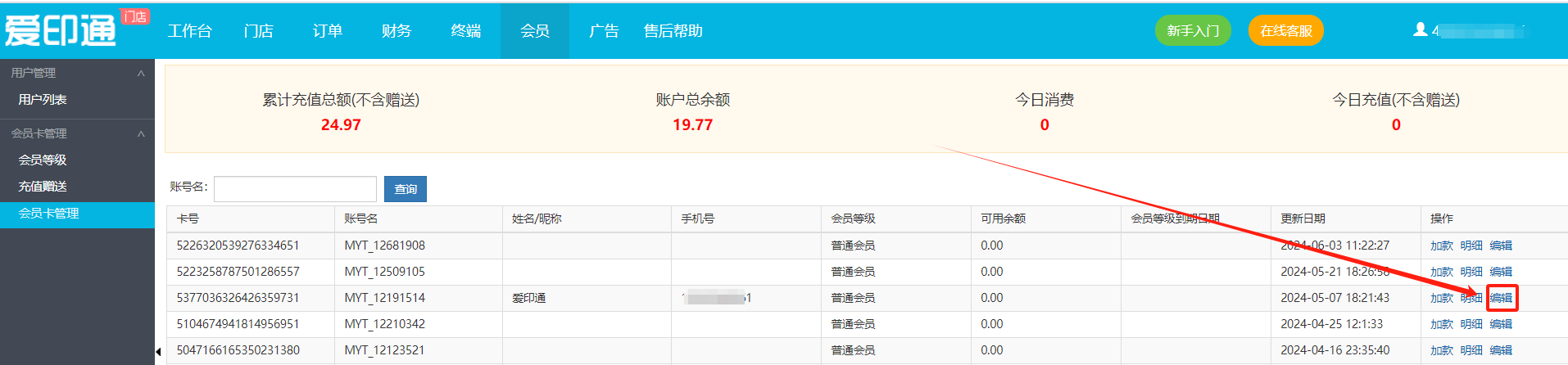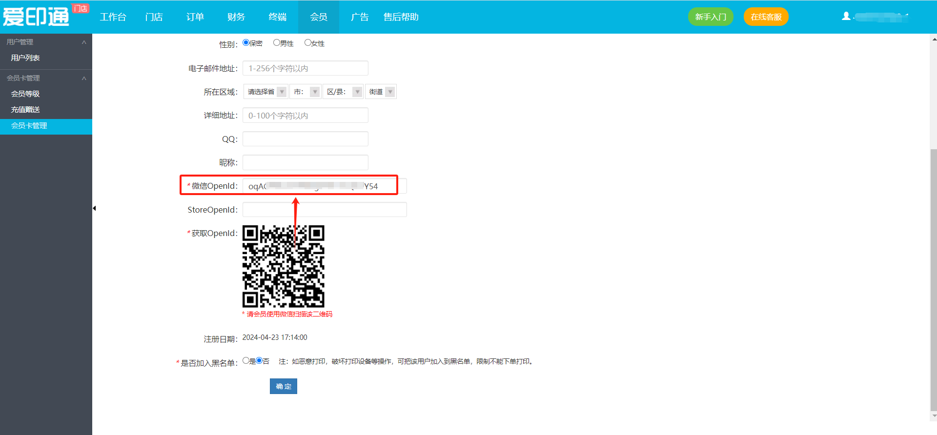 用户充值后,无法使用余额支付,商家可以到网页后台,会员菜单,会员卡管理搜索该用户的会员号码,然后点击编辑,用户扫码获取openid,保存后就可以正常使用余额付款了。