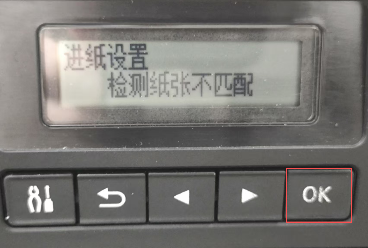 3、在进纸设置找到“检测纸张不匹配”,按"OK"