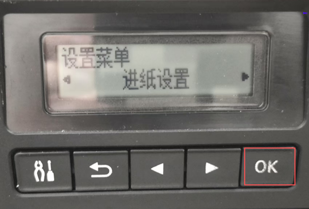 2、在设置菜单找到“进纸设置”,按"OK"