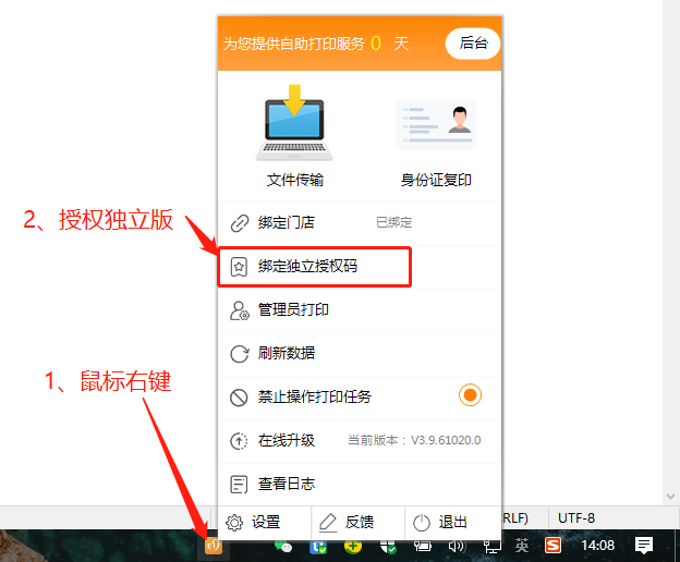 5、也可以右键桌面右下角软件选择切换成独立授权,输入授权码