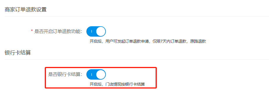 注意事项:开启银行卡结算前,一定要把门店的余额发起提现清空,一定,一定,一定要先清空门店之前的余额